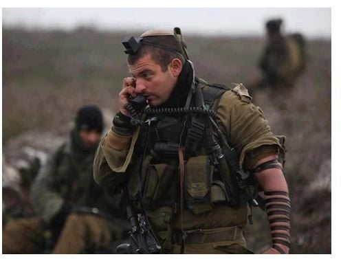 (The IDF soldier is wearing Tefillin on his left arm. The obligation of tefillin, as expouned by the Oral Law, is mentioned four times in the Torah. Read more here: http://en.wikipedia.org/wiki/Tefillin)